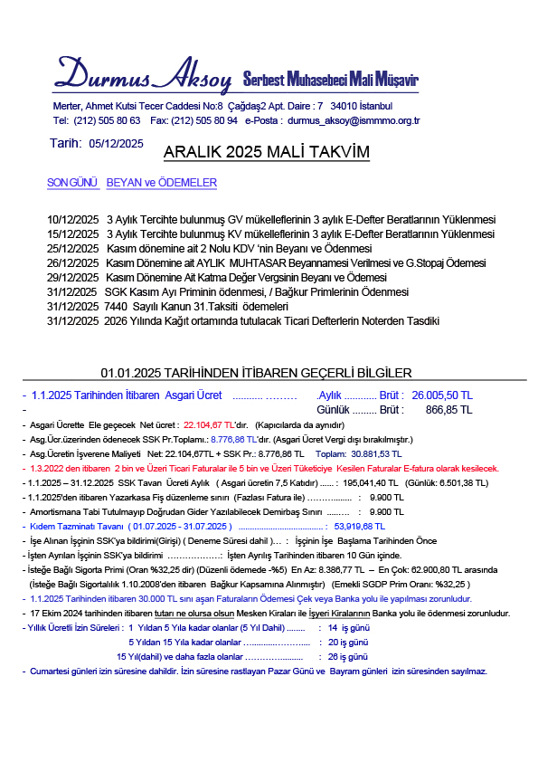 2025 Aralık Takvimini PDF Formatında indirip yazdırmak için