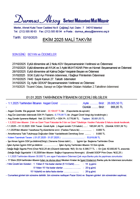 2025 Ekim Takvimini PDF Formatında indirip yazdırmak için
