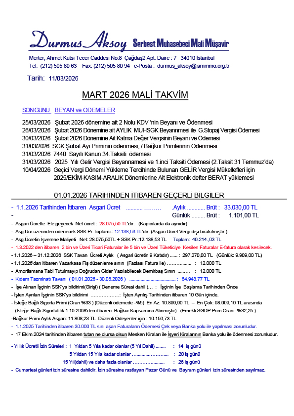 MALİ TAKVİM